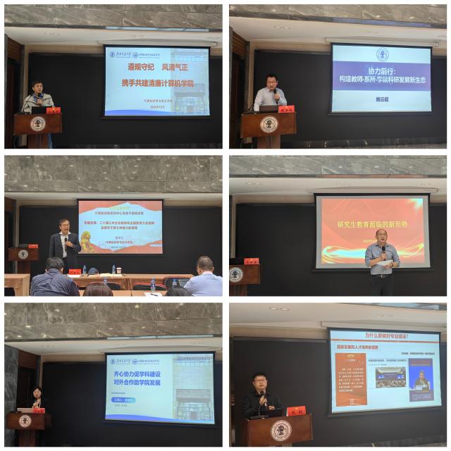 下午,学院副书记、副院长韦世奎围绕“研究生教育面临的新形势”主题进行培训,深入分析了研究生招生政策调整对本院的影响以及现有培养模式中存在的问题,强调了加强学生就业能力、优化课程设置、增加企业联合培养的重要性;副院长景丽萍带来“齐心协力促学科建设 对外合作助学院发展”主题培训报告,指出了目前学院学科建设的亮点和短板,介绍了学院在校友及企业合作方面的努力和成果,并分享了下一步继续加强对外合作、拓宽国际视野的工作思路;副院长熊轲做了题为“计算机类一流专业建设”的培训报告,从为什么要做好专业建设入手,详细介绍了课程建设、教材建设、团队建设、平台建设等方面的具体工作以及要求,并结合学院现状和典型案例,强调了专业建设要与时俱进、做好长期规划的重要性。