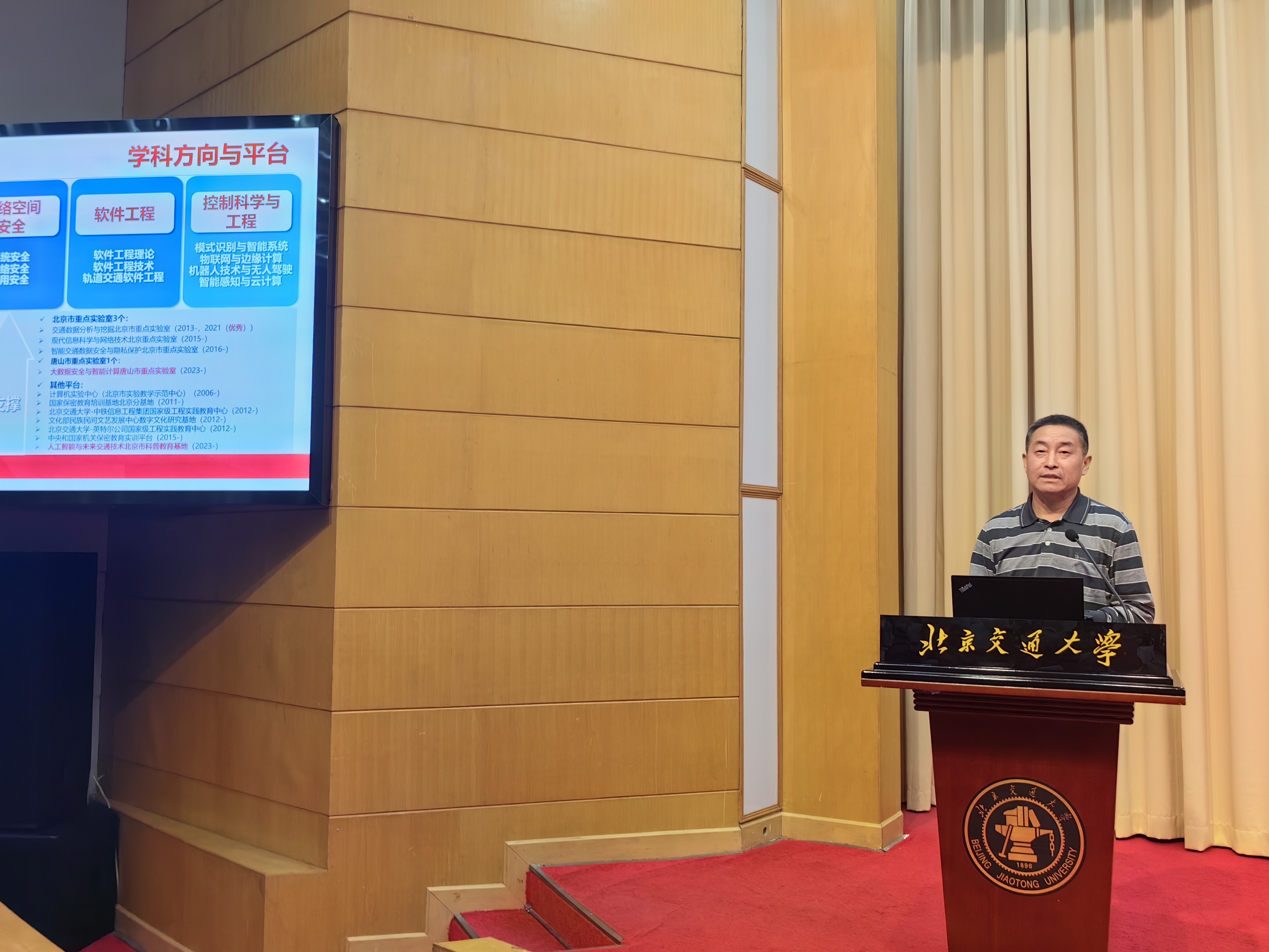 首先,由蔡伯根院长汇报学院整体工作。蔡院长从学科建设、师资队伍建设、学生培养、科学研究、对外交流合作、安全稳定、文化建设等7个方面,全方位总结了2022年学院工作开展及取得成果情况,并对2023年的重点工作提出了要求。之后,由李浥东副院长专题汇报十三五和十四五学院科技创新工作。李院长通过详实的数据分析,多维度展现了学院推进有组织科研工作现状,提出“谋大任务、筑大平台、出大成果”的发展目标,并就近期重要科研政策进行了宣贯。