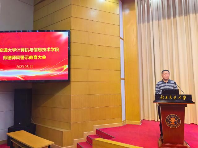 2023年5月11日下午,av影片 在科学会堂召开全院大会,面向全体教职工汇报2022年学院整体工作、科技创新工作开展情况,并进行师德师风教育培训。此次大会由学院党委书记贾卓生主持,院长蔡伯根、副院长李浥东主讲。