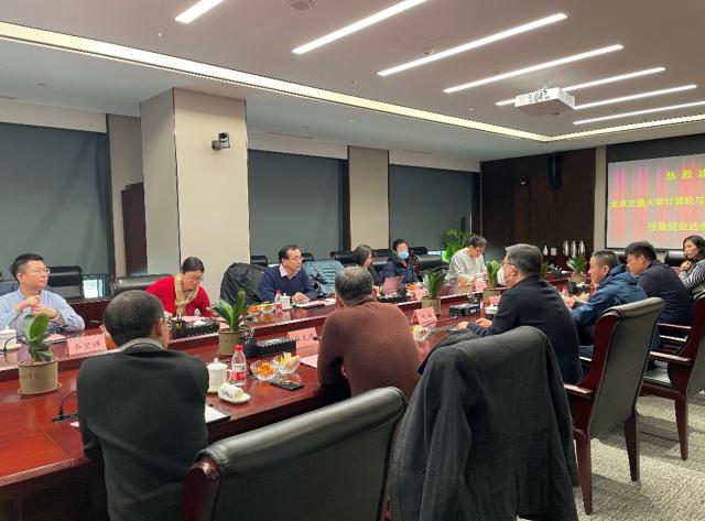 2023111日上午,计算机与信息技术学院党委书记贾卓生、副院长景丽萍等七位教师访了北京竞业达数码科技股份有限公司(以下简称“竞业达”)。与竞业达董事长钱瑞、副总裁李文波、研究院院长杜中华等企业人员就信创产学人才联合培养等相关事宜进行深入交流。