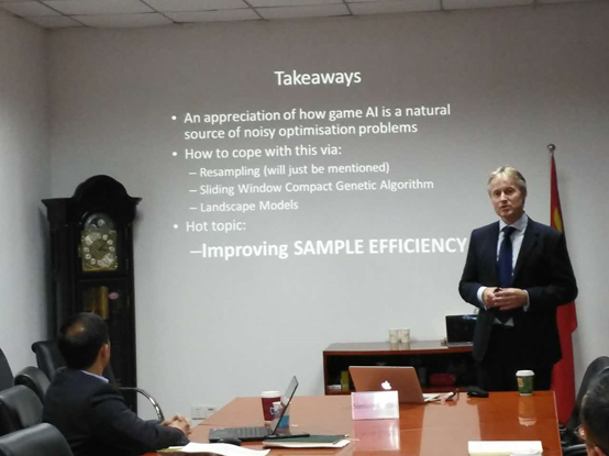 随后,Simon Lucas教授为av影片 师生做题目为“Game AI, Game Design and Noisy Optimisation”的讲座,并与师生热烈讨论。