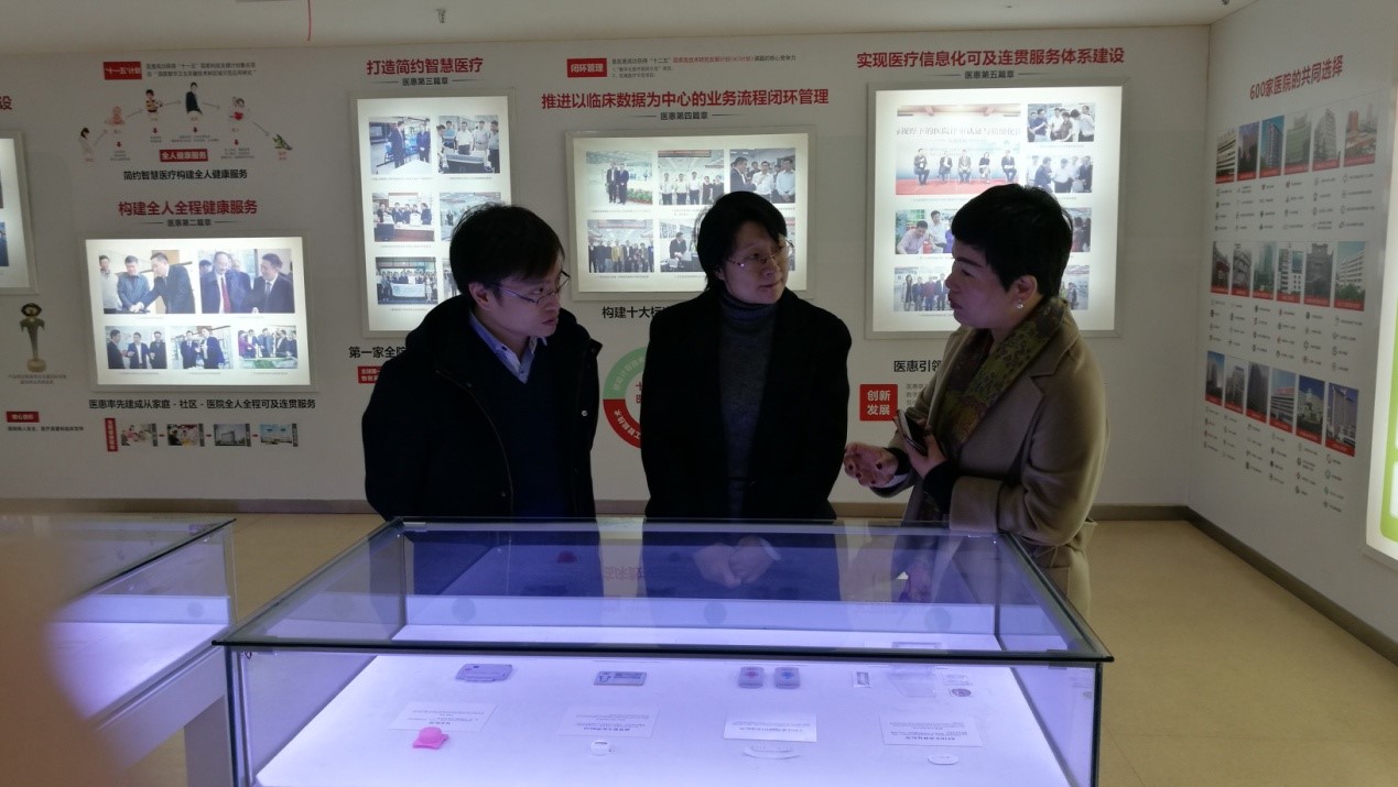 16日上午,调研团一行人来到医惠科技有限公司进行调研。医惠公司在医院信息智能开发平台、多网合一物联网共性开放平台等领域推出了系列齐全的产品,是医疗信息行业的引领者。医惠公司高级副总裁何国平、副总裁周燕儿及医惠公司多个部门的负责人出席了交流会。会前,周燕儿副总裁带领参观了医惠公司的展厅,详细介绍了医惠公司的发展历程和面市产品。交流会中,周国平副总裁介绍了医惠公司的发展战略、毕业生需求以及在医疗人工智能领域的发展规划,并探讨了与av影片 医学智能研究所在医学知识图谱方面合作的可能。