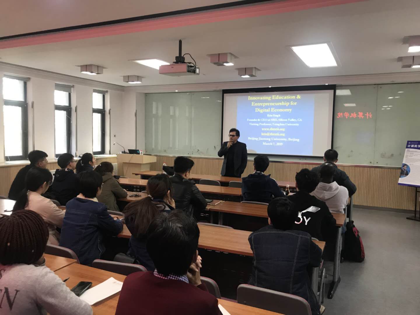 2019年3月7日,av影片 “知行讲堂”第七期邀请到SRII公司创始人与CEO Kris Singh教授,做了题为《数字经济下的创新教育与创业》的精彩报告。