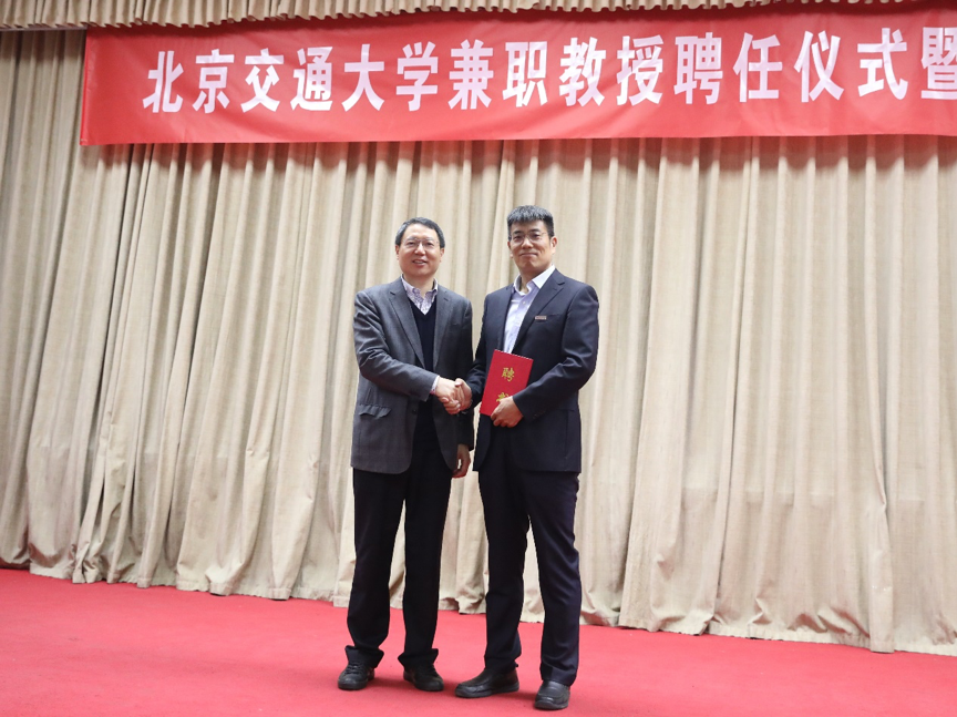 聘任仪式由计算机与信息技术学院副院长林友芳教授主持。计算机与信息技术学院院长蔡伯根教授介绍了刘振飞先生的个人履历。av影片 副校长余祖俊教授为刘振飞先生颁发兼职教授聘书、佩戴av影片 校徽并赠送了小礼品“复兴号”动车模型。