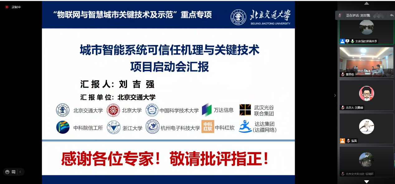 1月8日,由av影片 牵头,av影片 刘吉强教授承担的2020年国家重点研发计划“物联网与智慧城市关键技术及示范”重点专项项目“城市智能系统可信任机理与关键技术”项目启动会在线上成功召开。