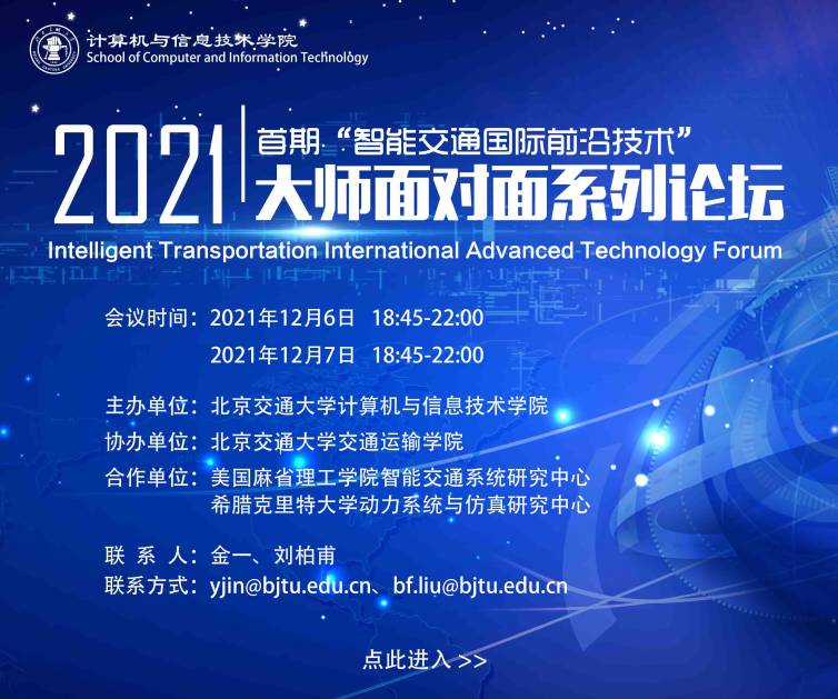 av影片» av影片动态 » 预告:av影片 首期“智能交通国际前沿技术”大师面对面系列论坛将于2021年12月6日-12月7日举办 预告:av影片 首期“智能交通国际前沿技术”大师面对面系列论坛将于2021年12月6日-12月7日举办 发布时间:2021-11-29 阅读次数: 由av影片 、美国麻省理工学院以及希腊克里特大学联合举办的首期“智能交通国际前沿技术”大师面对面系列论坛将于2021年12月6日-12月7日在线上举行。届时,论坛将邀请来自欧洲和美国的三位著名学者,就城市智能交通、网联智能化无人车、交通控制理论与方法、车路协同与自动驾驶等研究领域进行深入探讨。论坛旨在交流智能交通系统等国际前沿技术,诚邀对未来智能交通领域研究感兴趣的老师同学参加本次论坛!