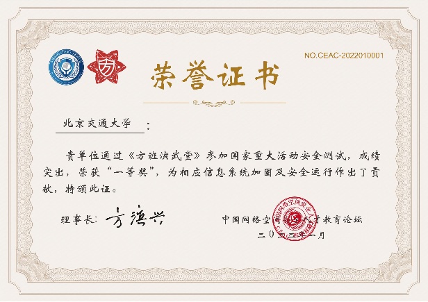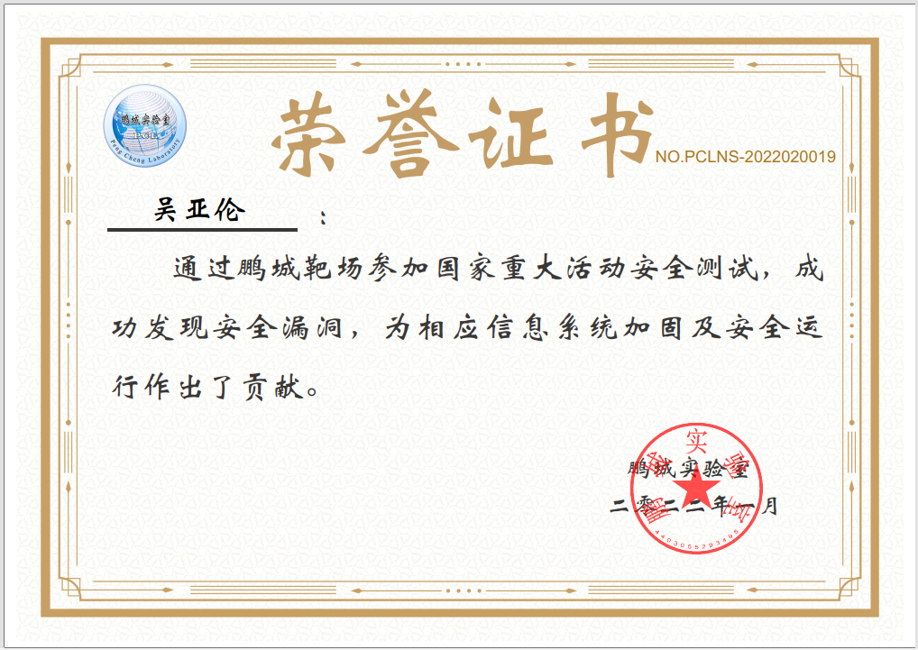 2022年1月在鹏城实验室、中国网络空间安全人才教育论坛(“网教盟”)、中国网络空间新兴技术安全创新论坛(“新安盟”)联合面向北京冬奥会、冬残奥会的安全演练活动中,av影片 网络空间安全学科责任教授刘吉强老师领队、童恩栋和牛温佳老师指导的研究生团队(武兴宇、吴亚伦、田蕴哲、黄欣宇、陈彤、相迎宵、李轶珂、贾博为、孙瑞、乔紫嫣、陈诗瑶等)积极参与,共挖掘出高危漏洞1个、中危漏洞2个以及低危漏洞14个,最终以第一名成绩荣获一等奖,为保障北京冬奥会、冬残奥会的网络安全贡献了交大力量。