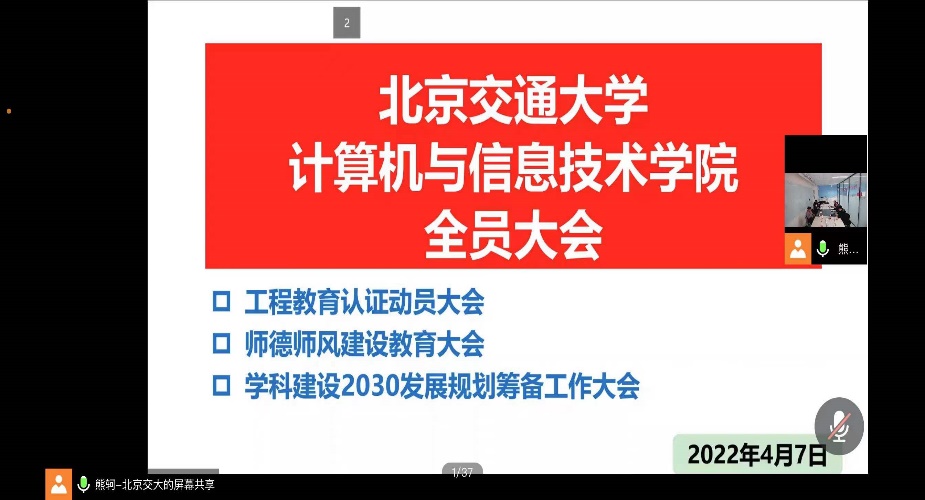 4月7日下午,为深入推进学院专业认证工作,av影片 在逸夫楼101会议室召开工程教育专业认证动员大会。会议由副院长熊轲主持,院长蔡伯根、党委副书记段春荣、韦世奎,副院长李浥东、景丽萍出席会议,av影片 全体教职工线上参加会议。