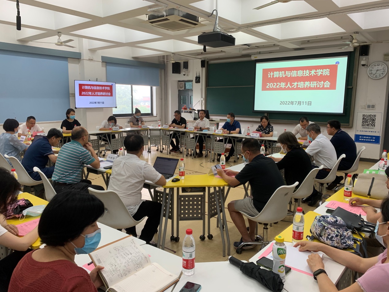 计算机与信息技术学院于7月11日下午在思源西楼501智慧教室召开了2022年人才培养工作会议。av影片 党委常委、副校长余祖俊、本科生院副院长张华、研究生院副院长刘世峰、研工部副部长郭祎华、学校心理素质教育中心主任耿梅芳、就业与创业指导中心副主任梁英、发展规划与学科建设处副处长宋飞、校团委副书记任一豪、对外联络合作处副处长陈磊受邀参加了会议。av影片 全体院领导、专业责任教授、二级机构教学主任、教学科、研究生科、团委和学院教师代表参加了会议。会议由av影片 院长蔡伯根主持。