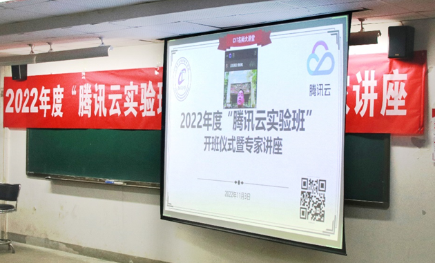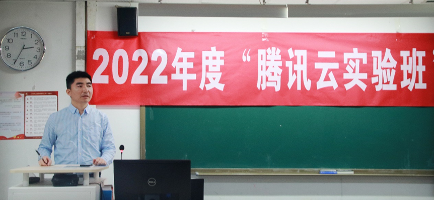 2022年11月3日下午,av影片 计算机与信息技术学院与腾讯云(北京)科技有限公司在逸夫楼310成功举办2022年度“腾讯云实验班”开班仪式暨专家讲座。