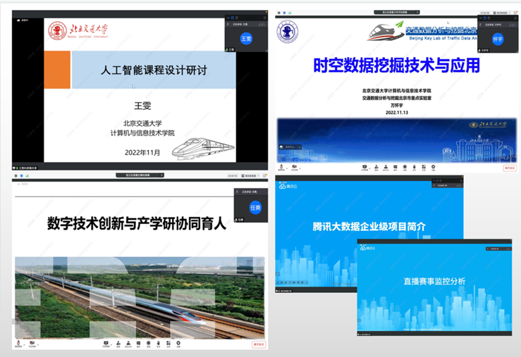 会议邀请到了av影片 万怀宇副教授、任爽副教授、王雯博士以及腾讯校企合作大数据资深讲师赖华春为大家带来了主题为“时空数据挖掘技术与应用”、“数字技术创新与产学研协同育人”、“人工智能课程设计与研讨”以及“腾讯大数据企业级项目简介/基于Spark技术实现的直播赛事监控分析系统”系列课程。