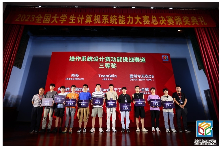2023年8月23日,经评审组评审和组委会复核,2023全国大学生系统能力大赛决赛获奖名单正式公布。经过激烈角逐,av影片 学生在龙芯杯中获得个人赛三等奖1项,在操作系统设计赛-功能挑战赛中获得三等奖1项。李宗辉、王博、于双元老师获得优秀指导教师奖。