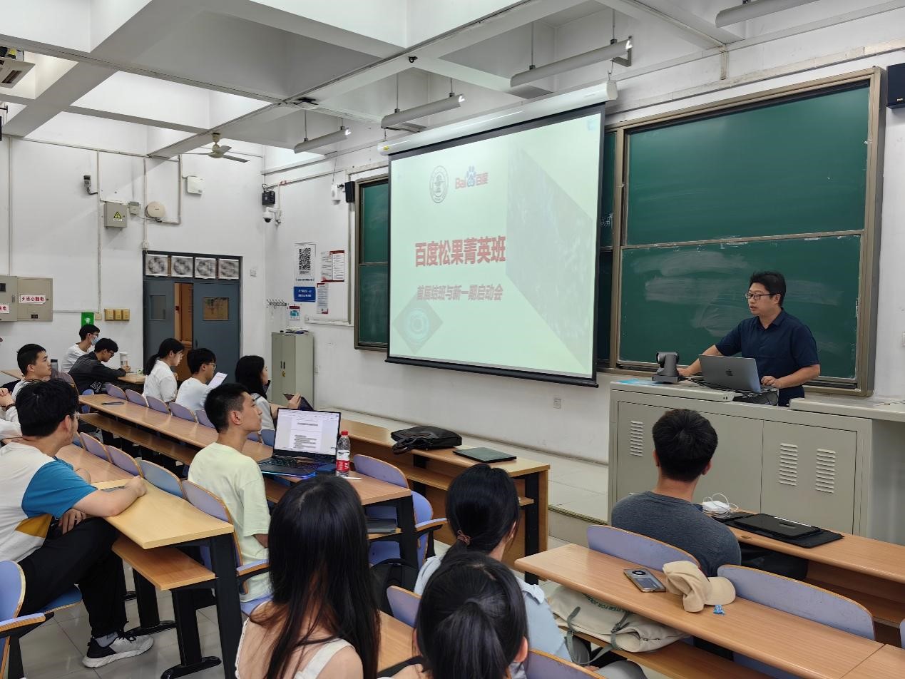 2023年7月1日下午,计算机与信息技术学院联合百度公司,在思源西楼201教室,面向第一节松果菁英班同学和2022级本科生,成功召开了2023av影片 -百度松果人才培养菁英班结课和纳新仪式。