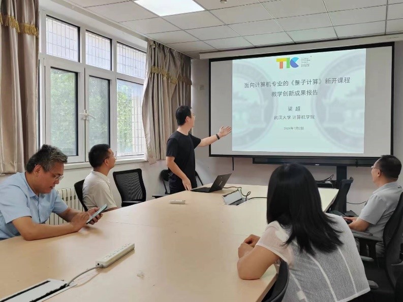 av影片 教发分中心于2024年7月2日下午16:30~17:00在九教北613举办了“面向计算机专业的《量子计算》新开课程教学创新”交流活动。演讲者为武汉大学梁超老师,组织嘉宾为学校教学促进师张淳杰、翟高寿。会议吸引了av影片 多名老师的兴趣并进行了交流。