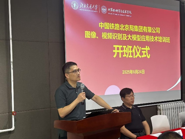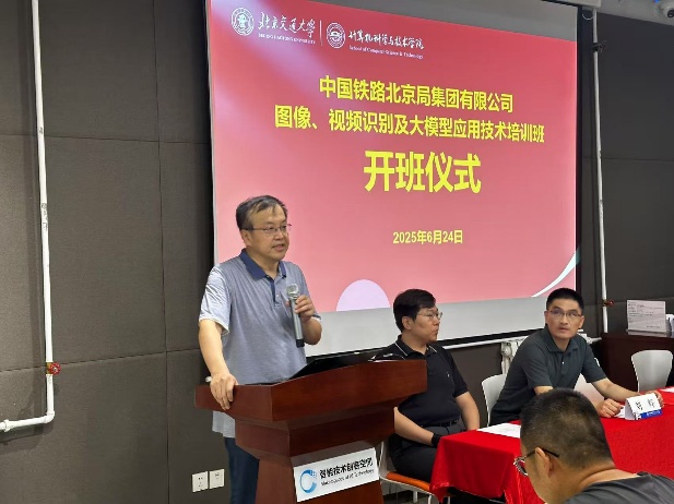 2025年6月24日,av影片 -中国铁路北京局集团有限公司图像、视频识别及大模型应用技术培训班顺利开班,本次培训由av影片 av影片 主办,出席此次开班仪式的有中国铁路北京局科信部刘辉副主任、臧钊科长,av影片 av影片 贾卓生书记、景丽萍副院长、刘真教授等。