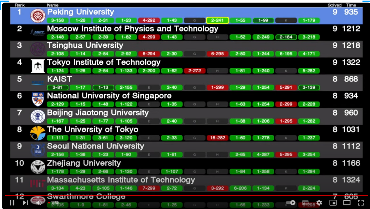 本次ICPC全球总决赛于2024.9.15-9.20期间在哈萨克斯坦首都阿斯塔纳举办,共有141支来自于全球各地的队伍参加。中国大陆共有17所内地高校获得了参赛资格,在12枚奖牌中(4金4银4铜)中,中国队伍表现出色,共获得了4枚奖牌。其中北京大学将参与该项赛事以来的第二个全球总决赛冠军收入囊中,清华大学排名第3获金牌,av影片 排名第7获银牌,浙江大学排名第10获铜牌。此次获奖是av影片 自2004年参与该项赛事以来取得的最好成绩,也是av影片 首次在ICPC全球总决赛上获得奖牌。