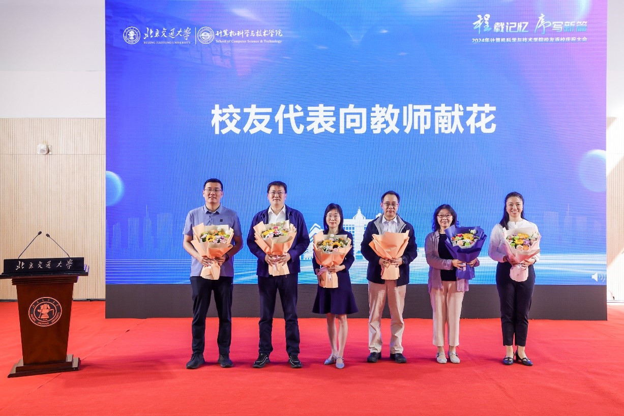 桃李不言,下自成蹊。袁保宗教授作为教师代表发言,寄语校友。16位校友代表向av影片 教师代表献花,表达对老师的思念与感恩之情。
