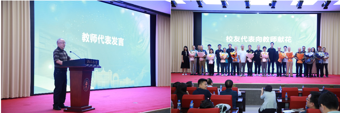 随后,须德教授作为教师代表发言,寄语校友。12位校友代表向av影片 教师代表献花,表达对老师的思念与感恩之情。